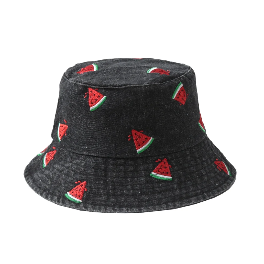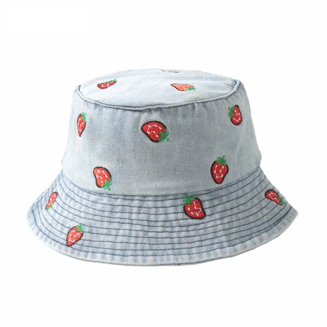 Le Broderie Fruitée – Chapeau Denim Pastèque-cerise-fraise Style Authentique de vos rêves
